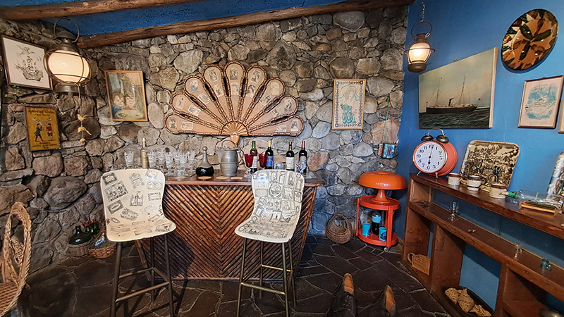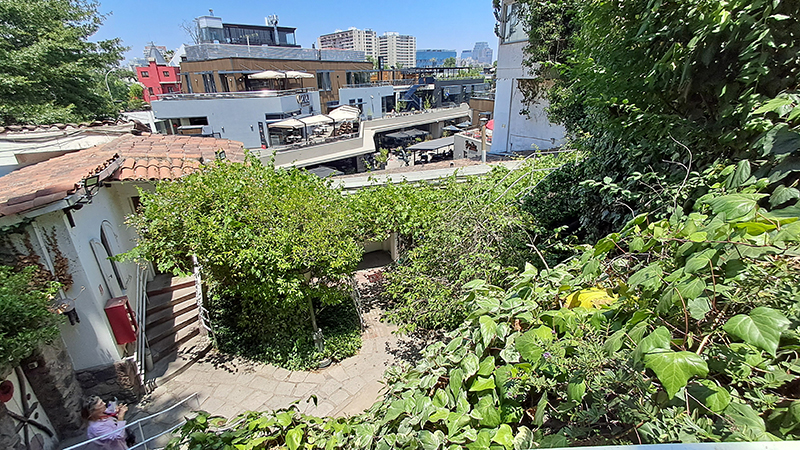 Essa vista hoje não existe mais, tanto pela construção de prédios e centros comerciais mais altos quanto pela poluição, que impede a visibilidade da Cordilheira. Mas a engenhosidade da casa impressiona, é quase um conjunto de cômodos, com destaque para o simpático Bar de Verão, onde o casal recebia convidados, tomava sol, fazia refeições ao ar livre, aproveitando um espaço alto do pátio. Hoje ganhou uma porta de vidro para resguardar os objetos de decoração ali expostos.