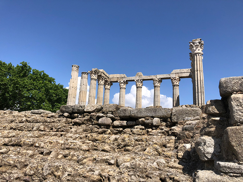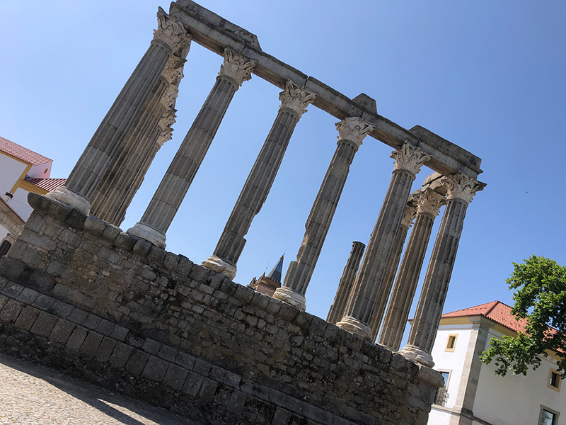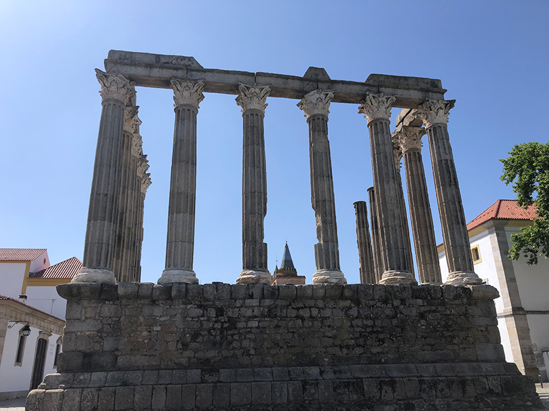 Évora, localizada a 135 km de Lisboa em direção ao centro do país, é uma cidade encantadora. A parte histórica é cercada por um muro construído no período medieval. Internamente, se destacam a Catedral da Sé, do século XII, e pela Capela de Ossos, ambas com amplo acesso para turistas, que irão conhecer não apenas a igreja em si como toda a estrutura do complexo, chegando até os telhados. O ponto alto, porém, é o Templo Romano de Évora, cuja base, feita de grandes blocos de granito e com mais de três metros de altura, está quase intacta.